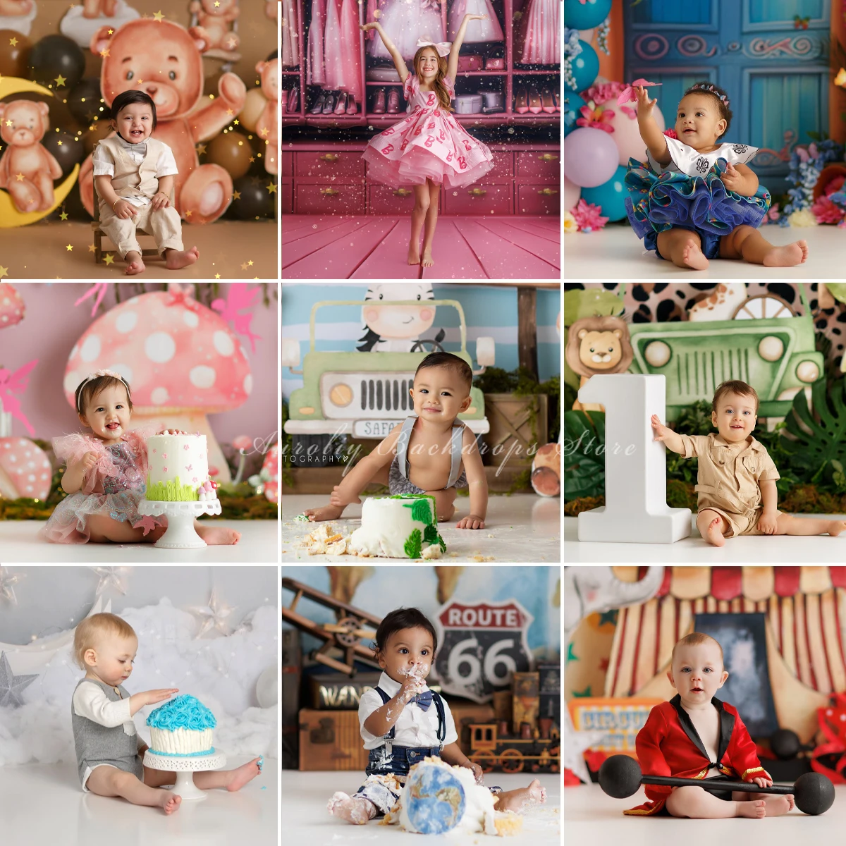 Cute Cartoon Backdrops Birthday Cake Smash Kids Baby Props Child Adult Photography Decors Starry Jungle Backgrounds