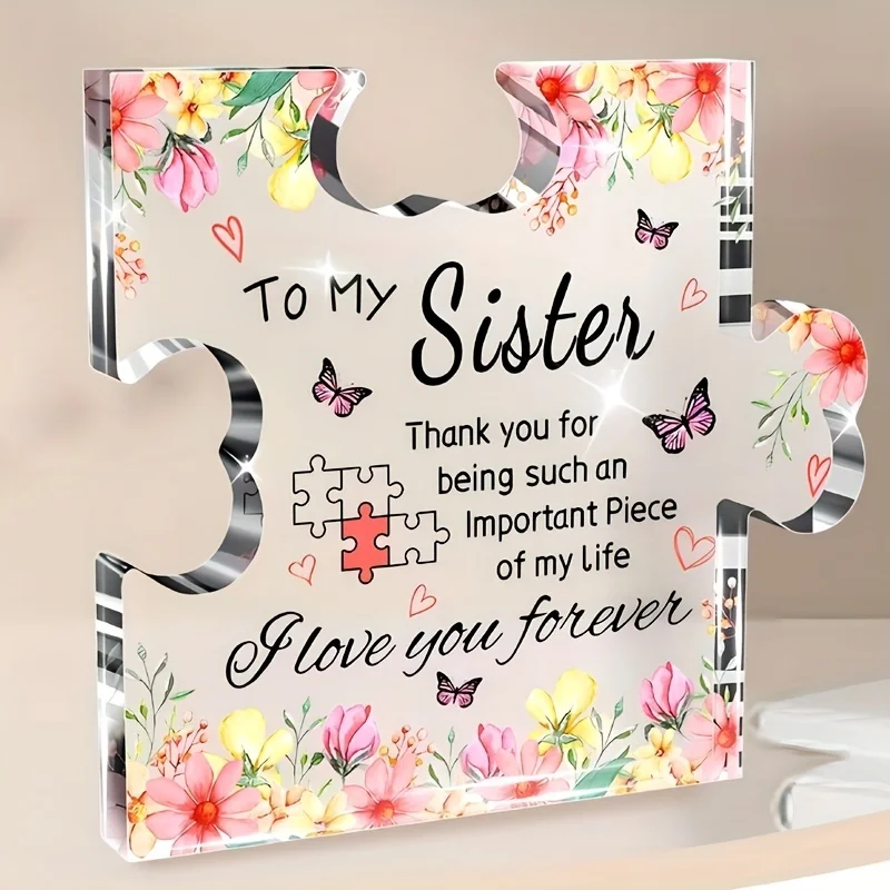 1pc Creative Sisters Birthday Gift, Acrylic Puzzle Graphic Plaque Home Office Desk Decoration Paperweight Keepsake for Sisters