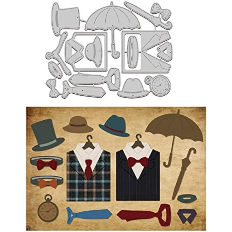 Vintage Decor Cutting Dies Hat Tie Carbon Steel Die Cutting Template Umbrella Clock Metal Crafting Dies Cutting