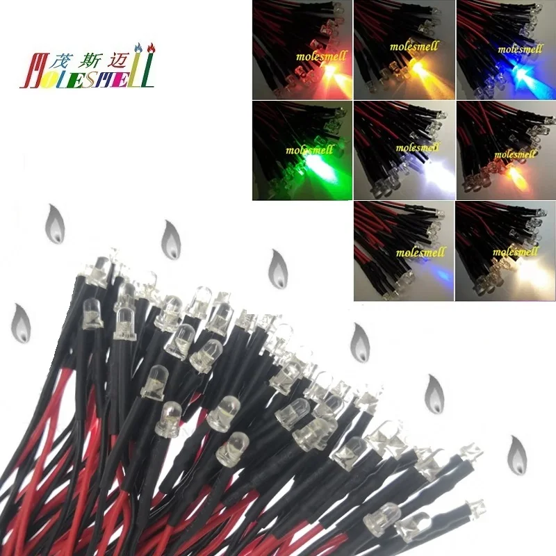 10pcs 3mm Flickering 3V DC Pre-Wired Water Clear Candle Leds Red Yellow Blue Green White Orange Purple Warm White Flicker  Read more