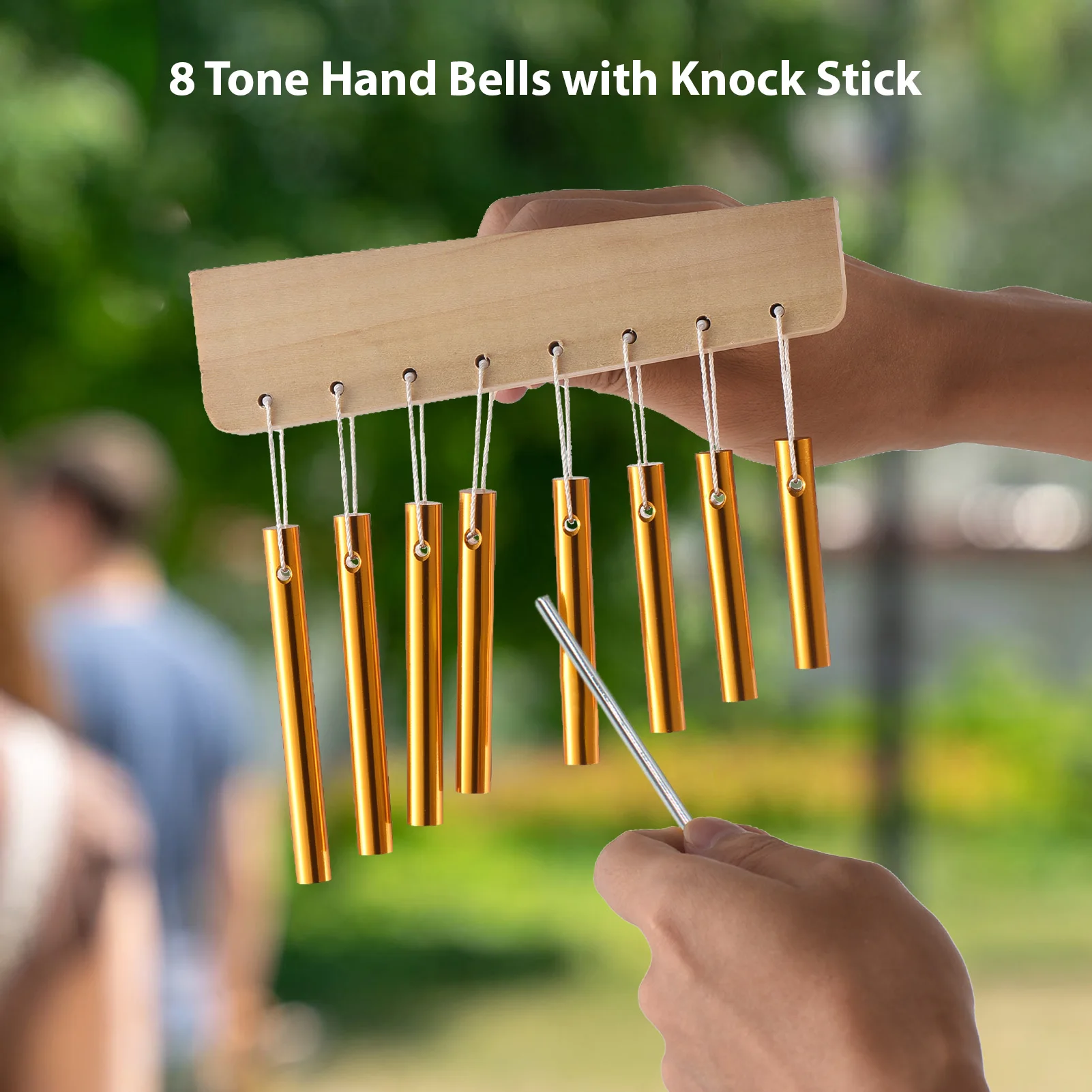 Bar Chimes 8 Tone Hand Bells with Knock Stick Birch Wood Solid Aluminum Tube Windchime Chimes Bells Hand Held Bar Bells