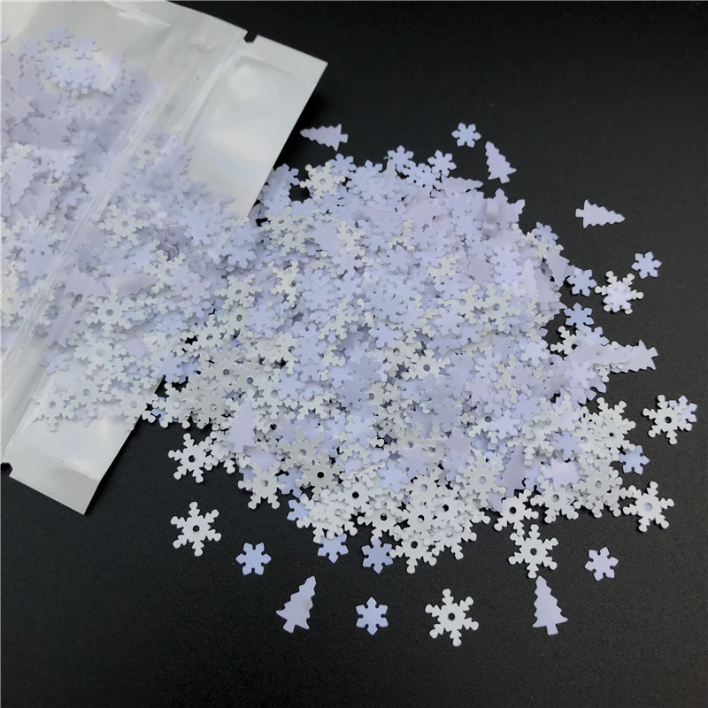 1Pack Multi Size 5mm-19mm White Snowflake Shape Sequins Sewing Craft Christmas Decoration White Navidad Ornaments Flower Sequin