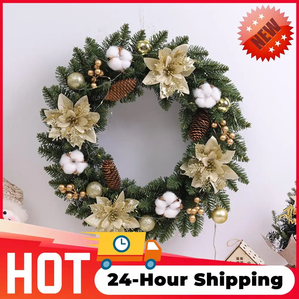 2025 Realistic Christmas Wreath with LED PVC Berry Ball Christmas Wreath Window Door Wall Ornament Decorations Holiday Decor