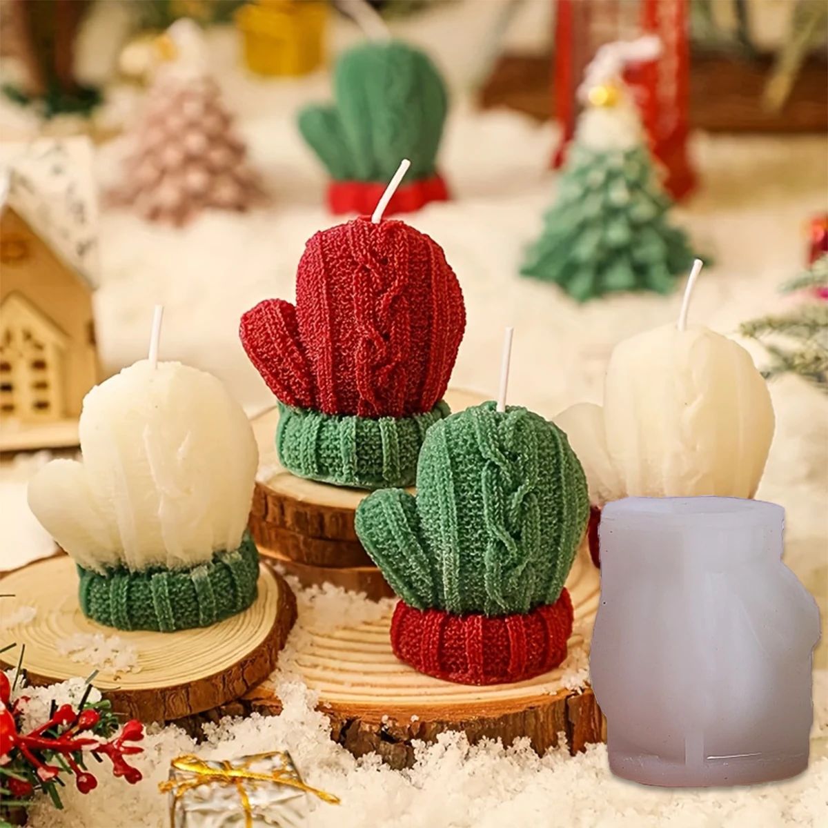 3D Christmas Glove Shaped Wax Candle Mold, Silicone Mold for Christmas Gloves Candle for Christmas, New Year Supplies