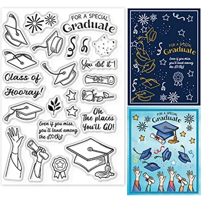 Graduation Clear Stamps for DIY Scrapbooking Decor Hat Rose Hand Transparent Silicone Stamps for Making Cards Photo Album Decor