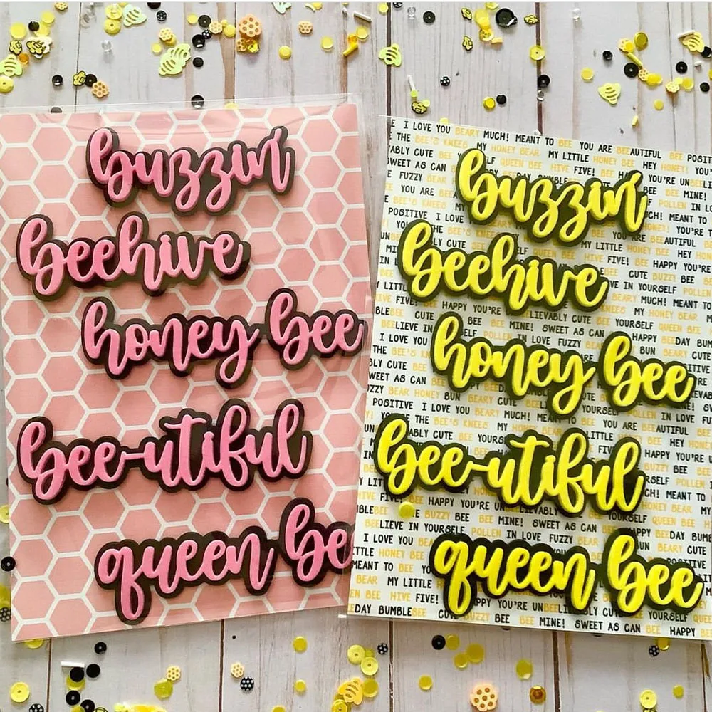 KSCRAFT Bee Sentiments Shadow Words Metal Cutting Dies Stencils for DIY Scrapbooking Decorative Embossing DIY Paper Cards