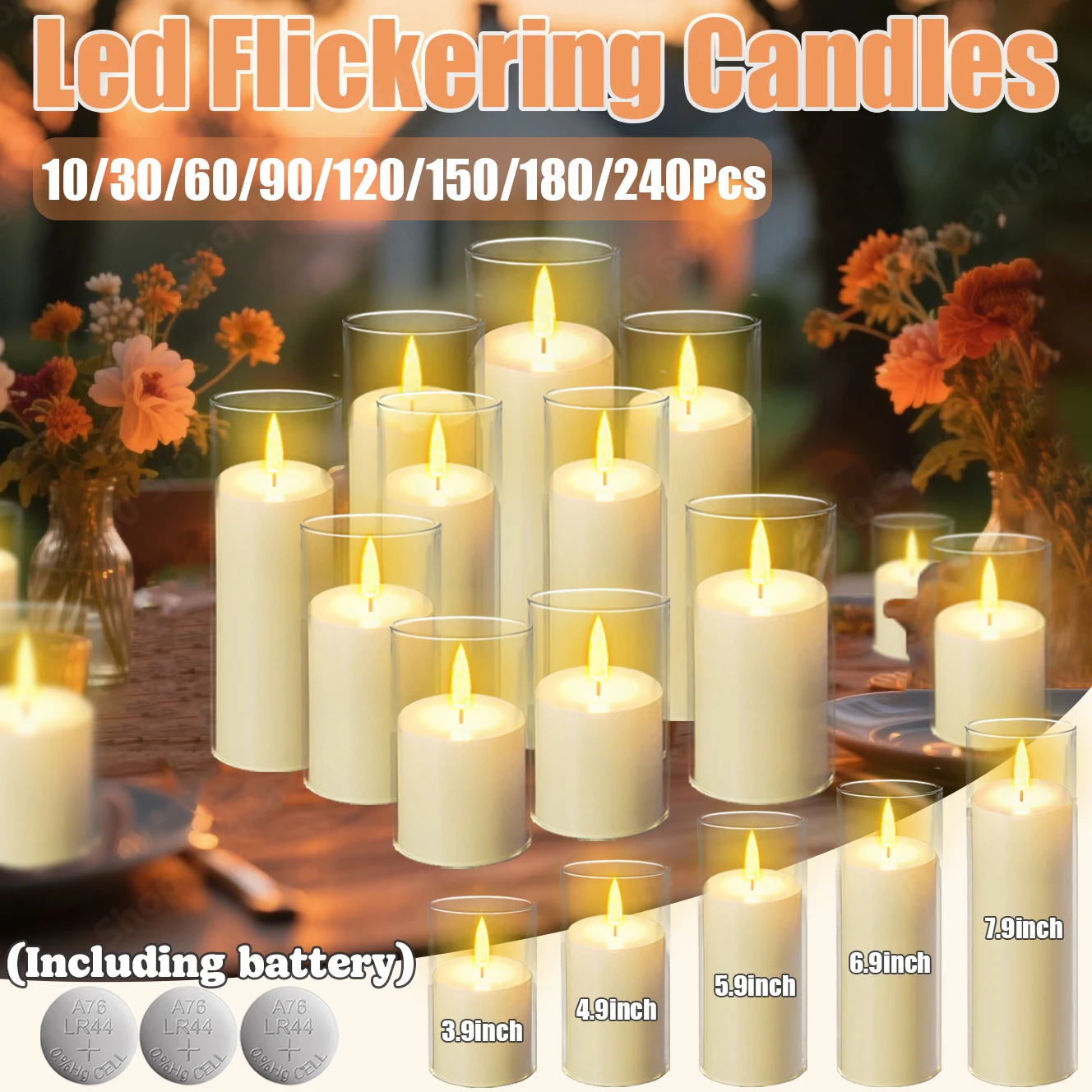 10-240Pcs LED Pillar Candles Wedding Flameless Candle with Battery Powered Flickering Candle Concert Birthday Party Table Decor