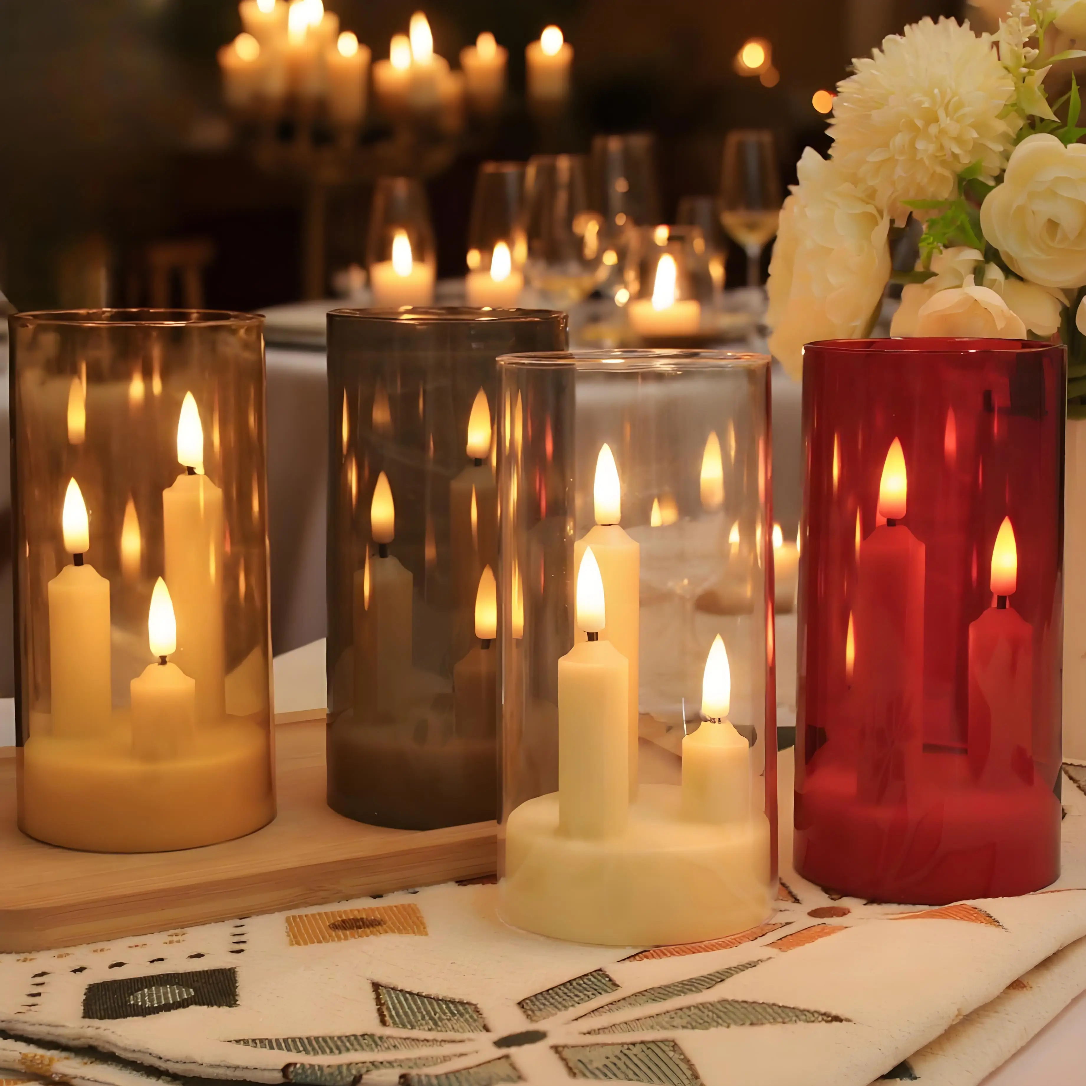 3 in 1 Flameless 5/8/10CM Taper Candles Battery Operated LED Acrylic Pillar Flickering LED Electronic Candles with Lampshade