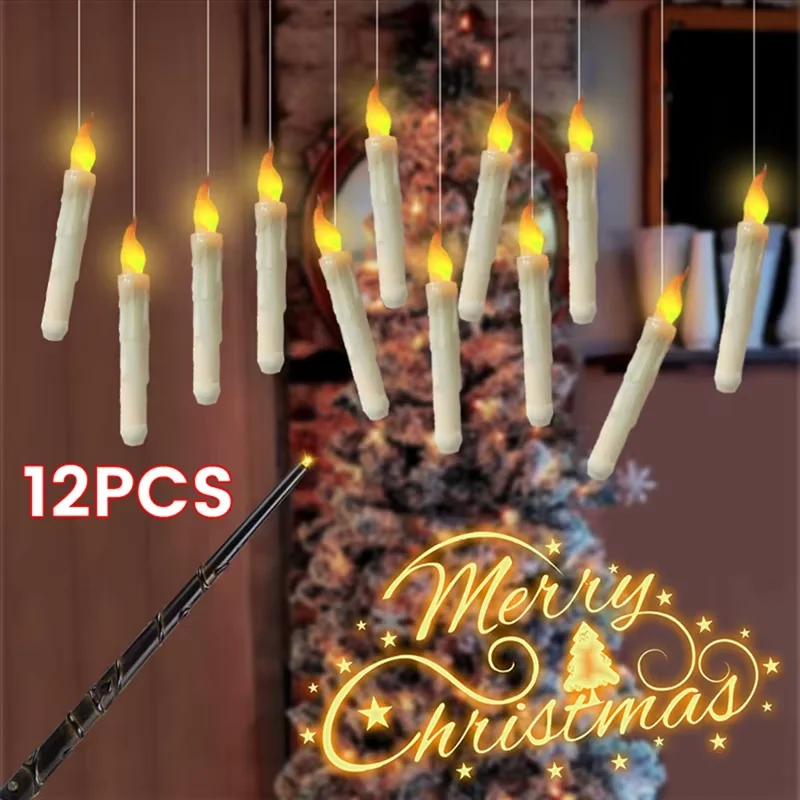 12PCS Hanging Floating Candle with Magical Wand Remote Candle LED Flickering Flameless for Party Christmas Halloween Decor  Read more