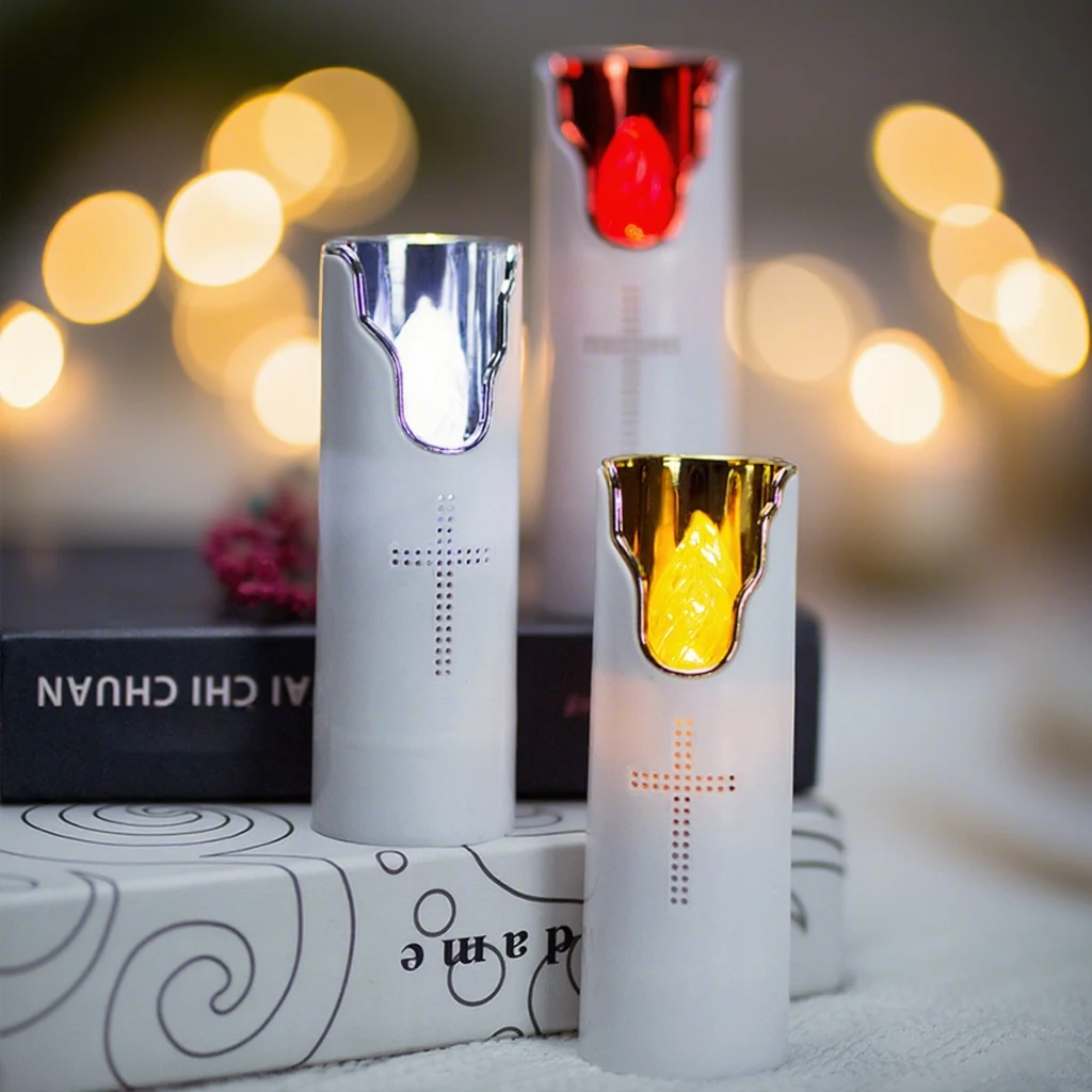 Flameless LED Prayer Candle Lamp with Swinging Flame Music Speaker Dry Battery Powered for Home Decorative lights Serene Spaces