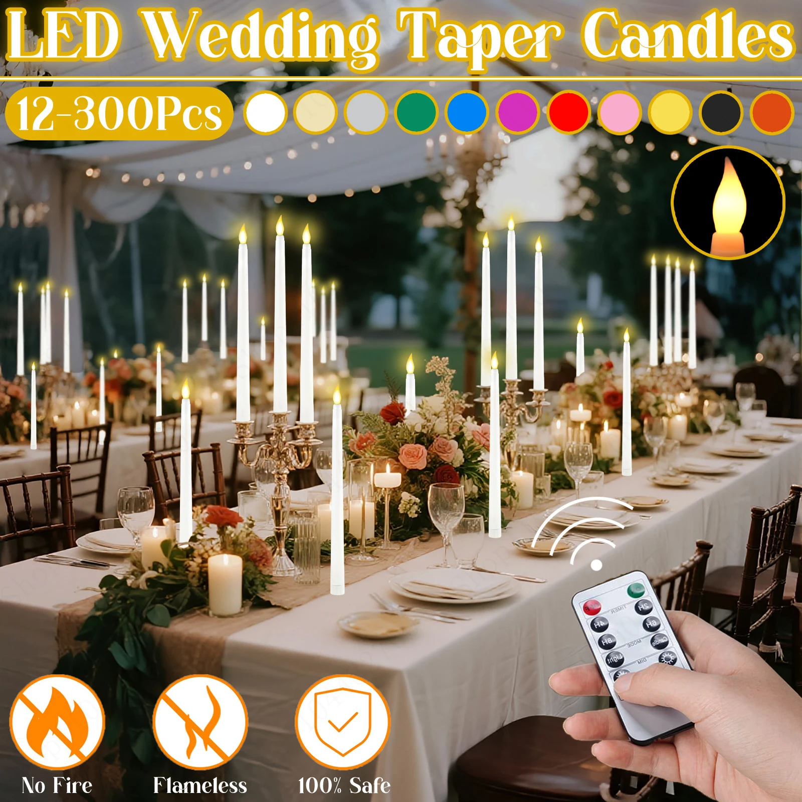 12-300Pcs LED Flameless Candles Wedding Flicking LED Candles with Remote Control LED Taper Candles Home Wedding Festival Decor