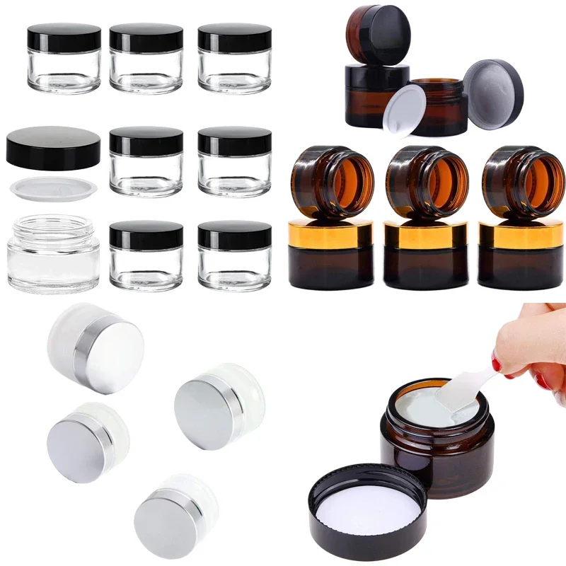5Pcs 5g-100g Mini Amber Round Glass Creams Jars Pots W/ Inner Liners & Lids Make up Vials For Candle Lotion Powders Storage  Read more
