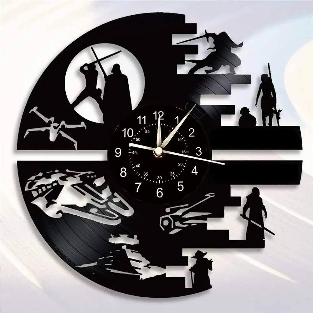 Science Fiction Movie Theme Clock Vinyl Record Wall Clock LED Night Light Home Decoration 7 Color Nightlight Wall Clock Boy Gift