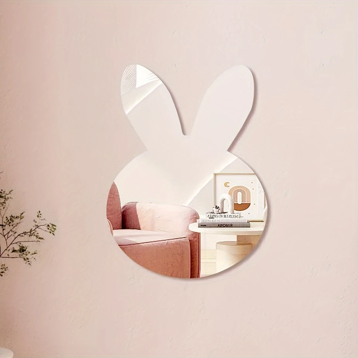 Cartoon Rabbit Shape Acrylic Self-adhesive Wall Mirror Children Room Classroom Bedroom Bathroom Makeup Mirror Decor Girls Gifts