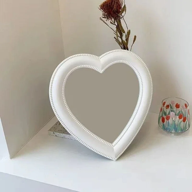 Heart-shaped Mirror Bedroom Table-top Makeup Mirror Home Dual-purpose Wall-mounted Dressing Mirror Cute Heart-shaped Pose Prop  Read more