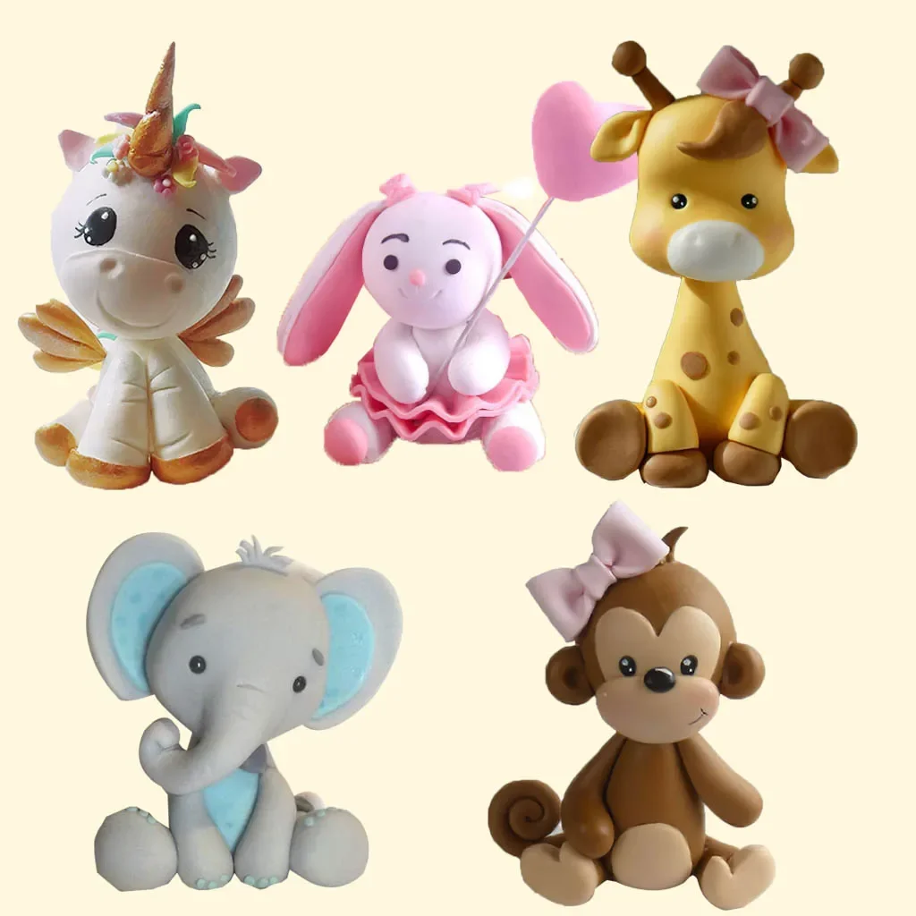 Cartoon Woodland Animals Ornaments Jungle Giraffe Fox Rabbit Lion Dessert Decor Kids 1st Birthday Cake Decor Children's Day Gift  Read more