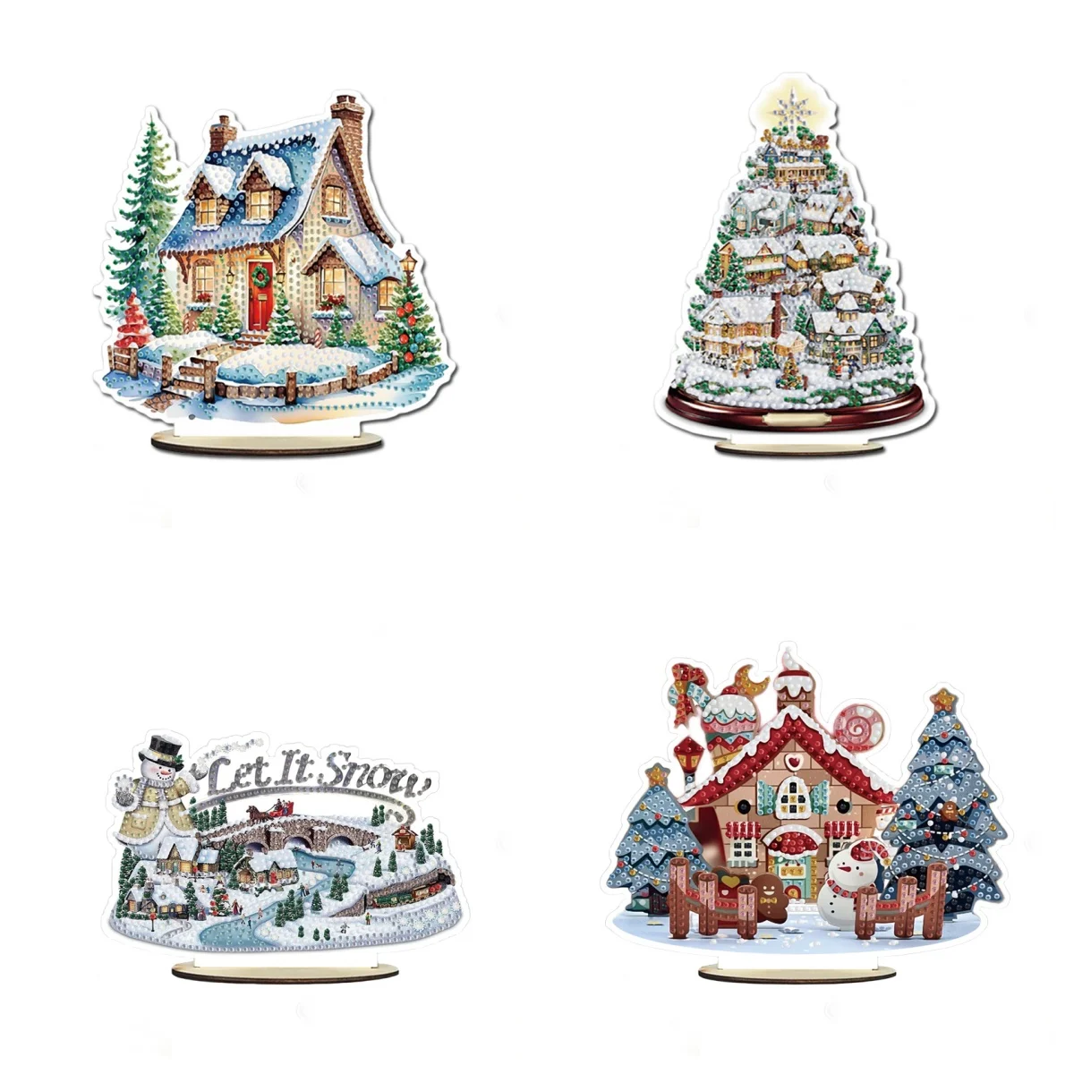 1pc DIY Christmas tree Diamond Painting Table Decoration for Adults One Sided Wooden Desk Ornament for for Bedroom, Living Room