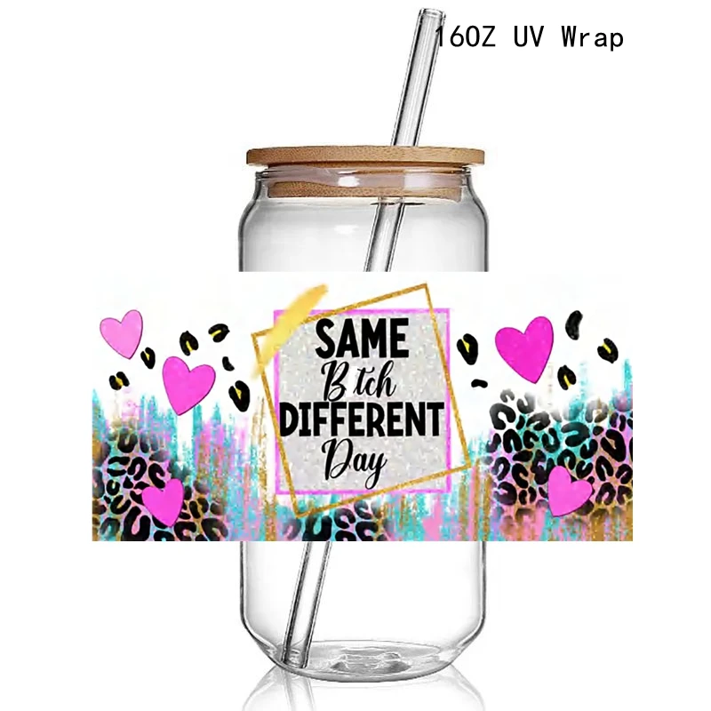 Unique Leopord Lady Design print 3D UV DTF Cup Wraps stickers Same Bch Different Day UV Cup Wraps for 16oz Libbey Glass Can