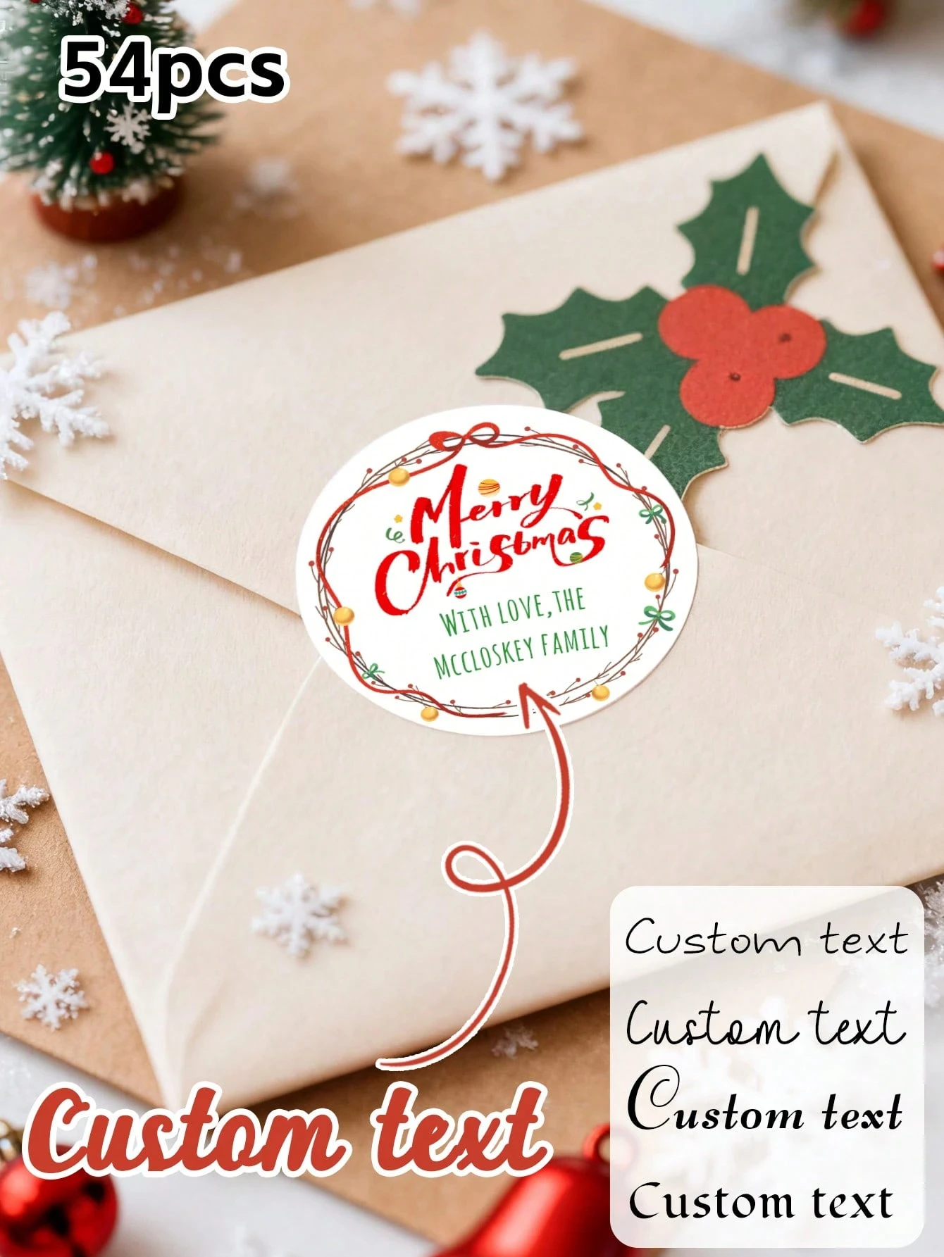 4-8CM Custom Christmas Stickers With Text, Personalized Holiday Stickers, Customized Name Tag Stickers, Customizable Round Stickers