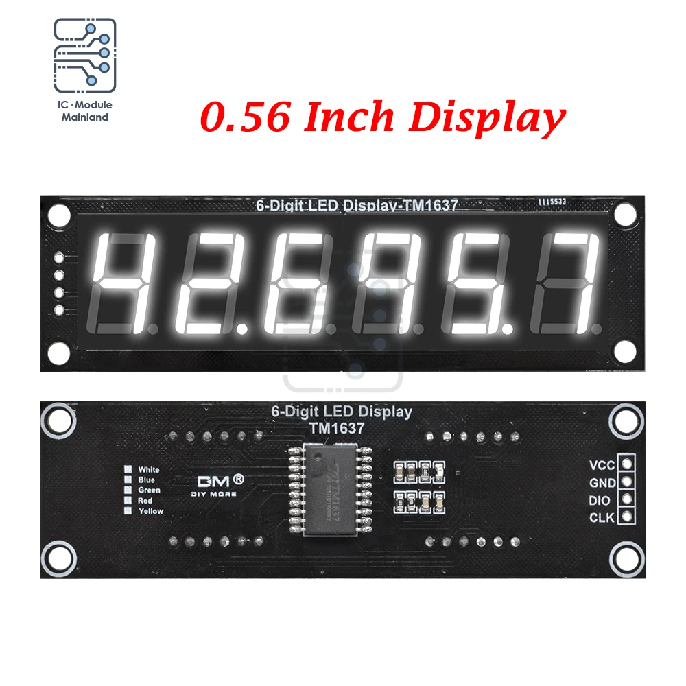 TM1637 6-Digit 0.36/0.56 inch 7 Segments Digital Tube Clock Module Blue Yellow White Green Red LED Display For Arduino