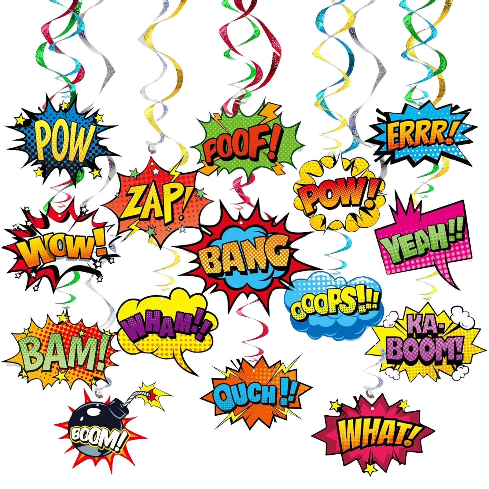 Superhero Hanging Swirls Hero Action Sign Foil Ceiling Hanging Swirls Streams Banner Decor Garland for Boy Girl Superhero Baby