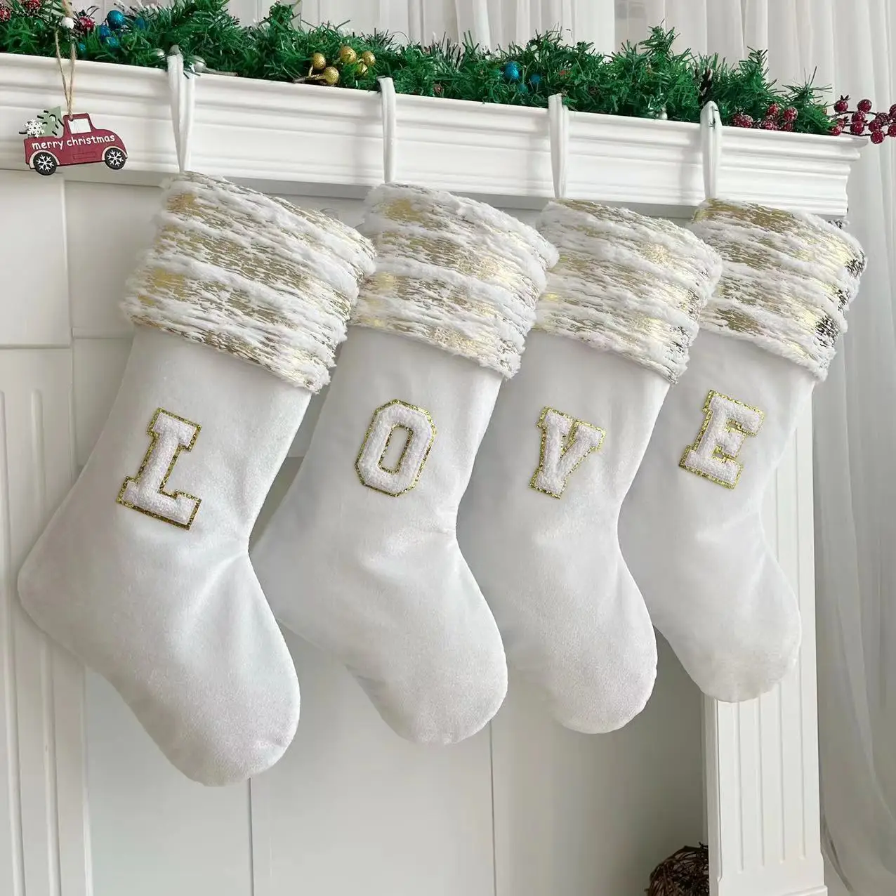Christmas Stockings White Stamping Gold Snowflake Letters Xmas Ornaments Christmas Tree Decorations Gift Socks