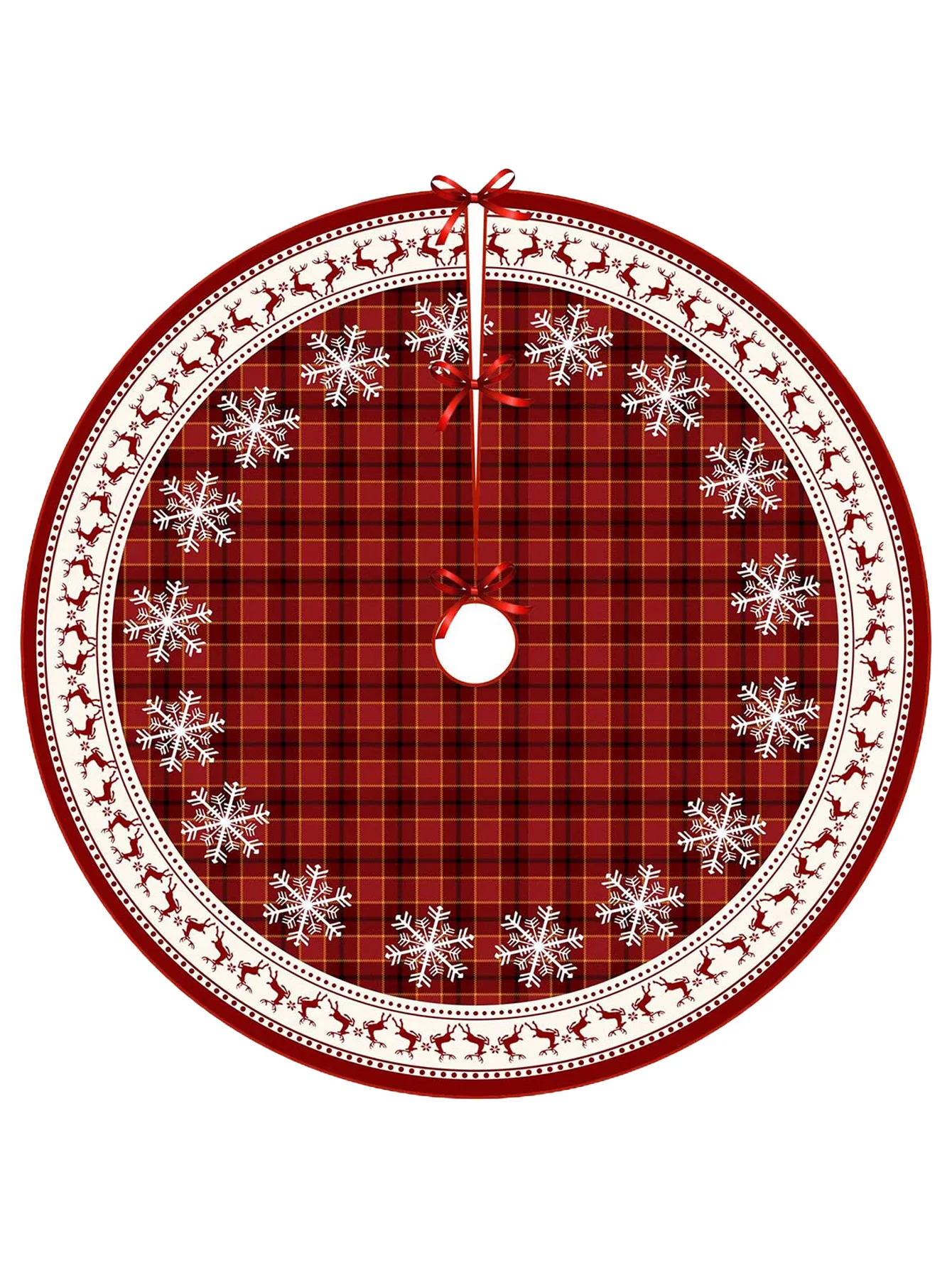 VIKAMA Christmas Tree Skirt Christmas Red Background Snowflake Reindeer Print Christmas Tree Skirt Cushion Christmas Decoration
