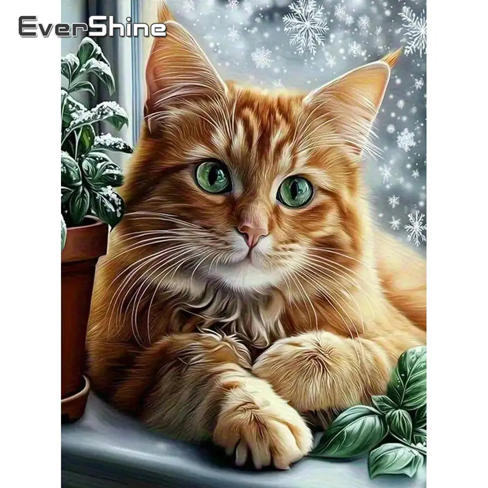 Evershine DIY Diamond Mosaic Cat Animal Picture Of Rhinestones Diamond Painting Pattern For Adults Beginners Unique Gift