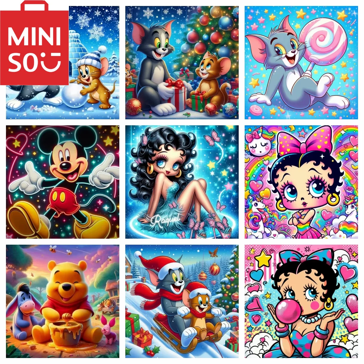 MINISO 5D DIY Disney Round Square Diamond Cartoon Cat and Mouse Diamond Painting Winnie The Pooh Handmade Mosaic Home Decoration