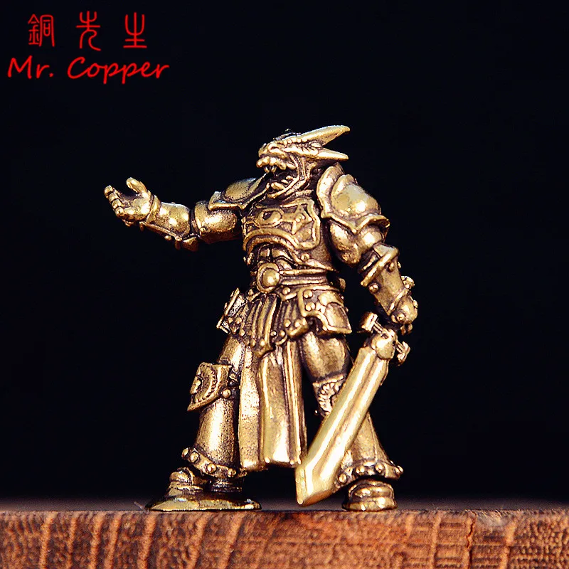 Brass Wolf Head Warrior Figurines Miniatures Desktop Ornaments Retro Metal Solider Models Home Decorations Crafts Accessories