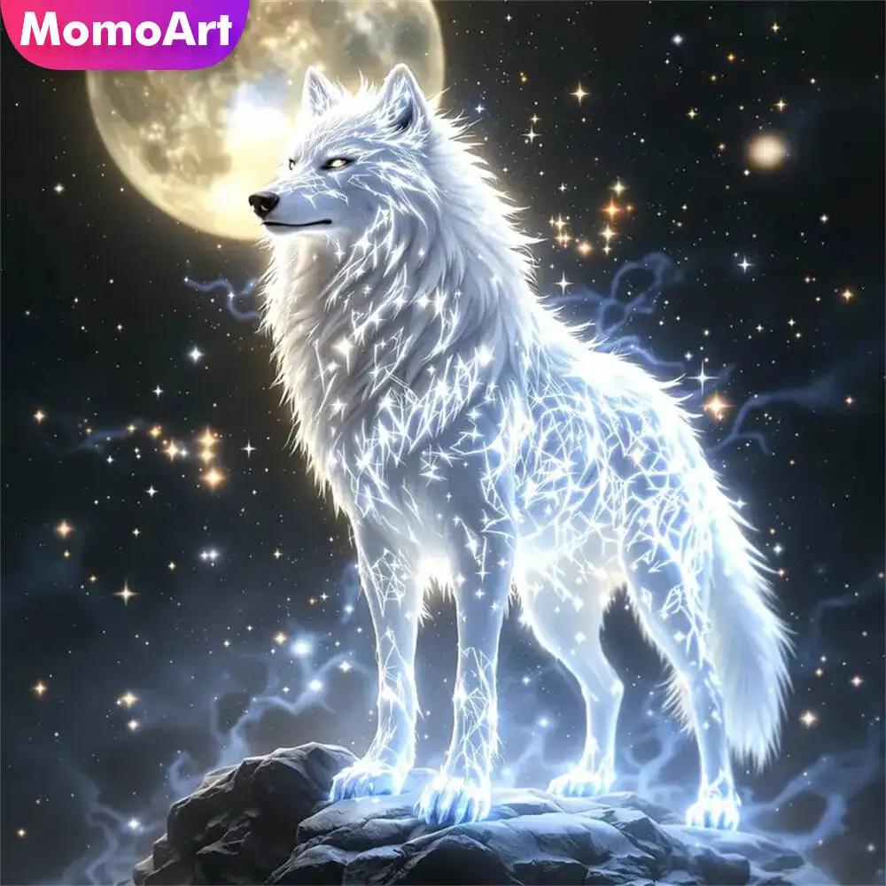 Momoart 5D DIY Diamond Mosaic Wolf Suitable For Beginners Diamond Painting Dog Animal Moon Embroidery Sunset Holiday Gifts