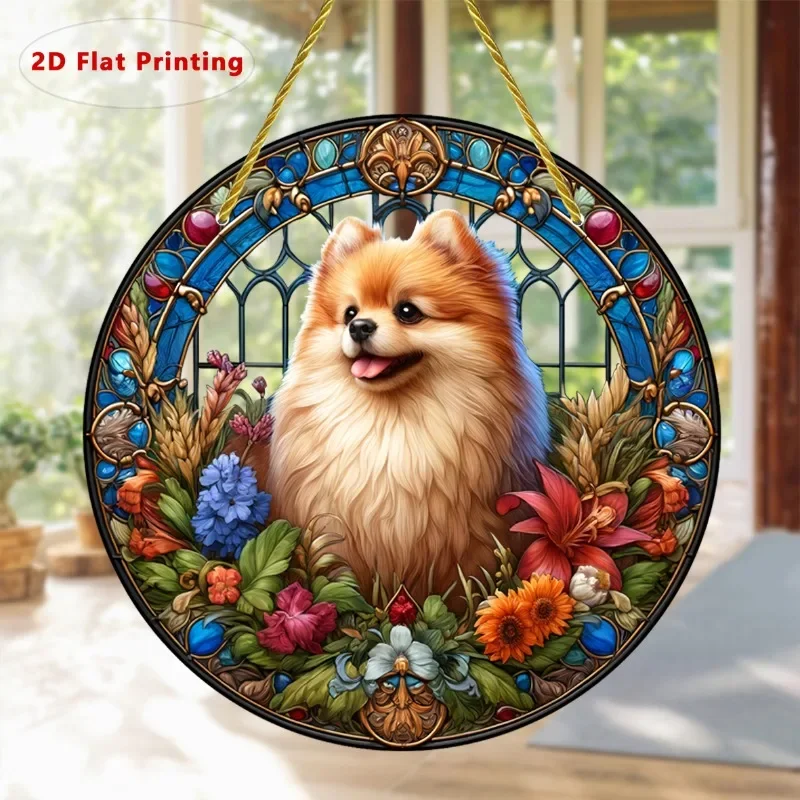 Adorable 2D Round Pomeranian Dog Suncatcher - Colorful Acrylic Garden Light Catcher for Year-Round Home & Window Decor