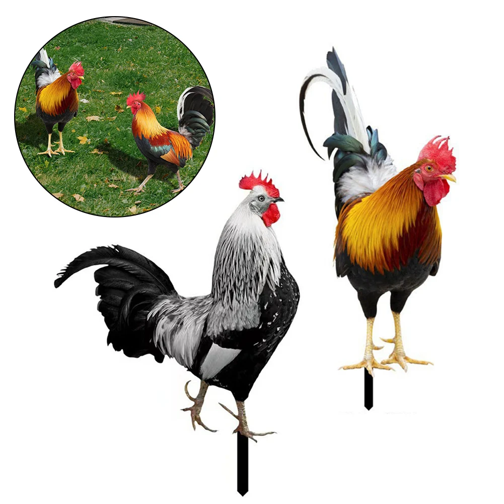 American Country Farm Simulated Rooster and Hen Figurines, Courtyard Lawn Garden Landscape Decoration Resin Craft