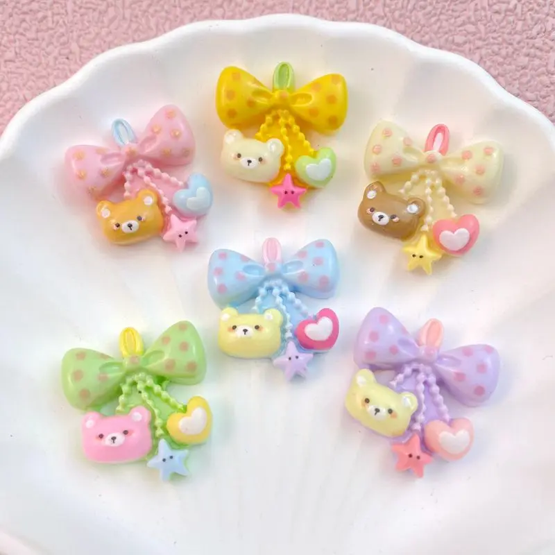 10Pcs New Cute Cartoon Little Bear Bow Series Flat Back Resin Cabochons DIY Jewelry Craft Decoration Accessorie  Read more