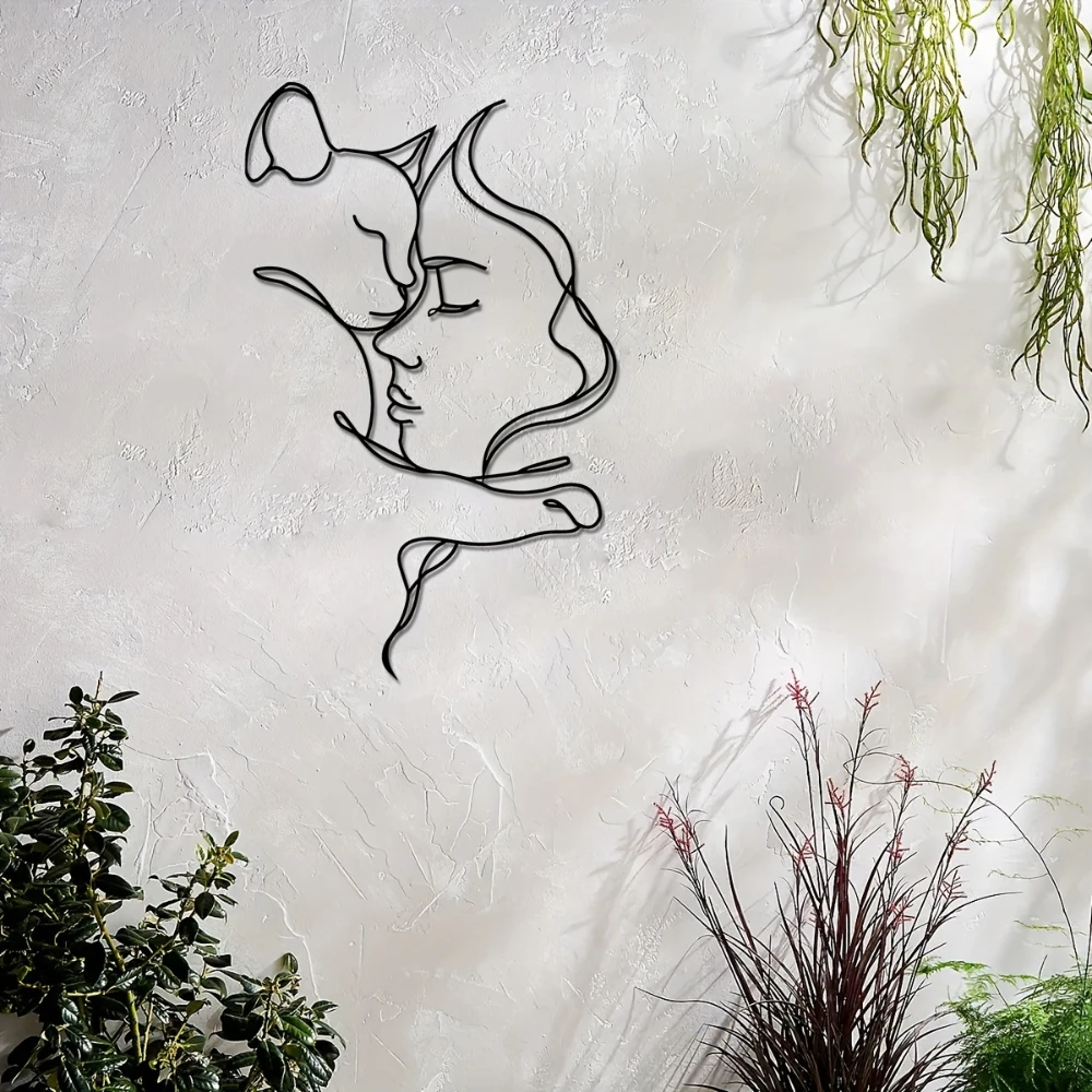 Elegant Cat and Woman Metal Wall Art - Minimalist Black Silhouette, Ideal for Cat Lovers & Sophisticated Home Décor  Read more