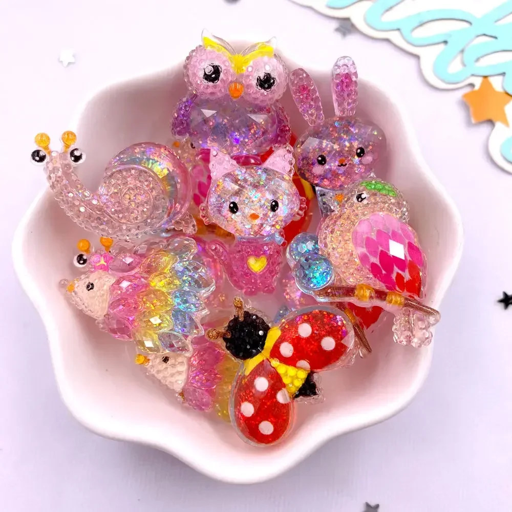 10PCS Resin Colorful Candy Color Cats Snail Beetle Rabbit Owl Figurines Flat back Scrapbook DIY Accessories Cartoon Decor Crafts