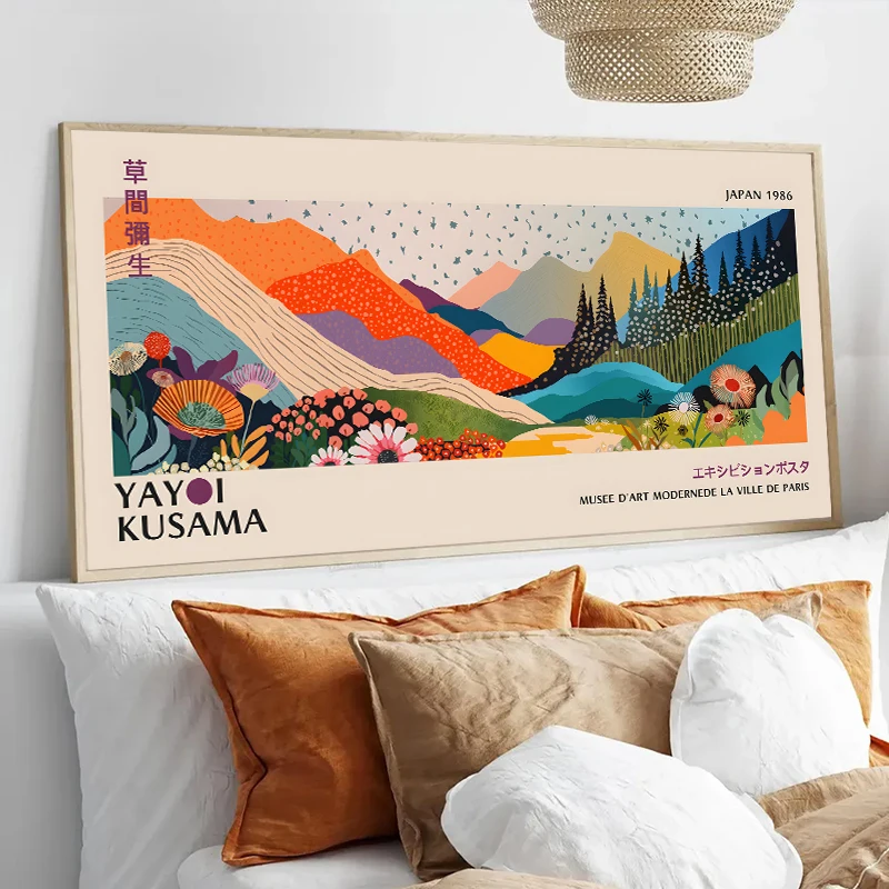 Abstract Wall Art Canvas Painting Yayoi Kusama x Hokusai Pumpkin Art Exhibition Poster Japan Retro Picture Living Room Decor
