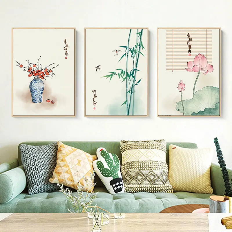 Vintage Chinese Painting Lotus Persimmon Bamboo Posters Prints Canvas Painting Wall Art Picture Living Room Home Decor
