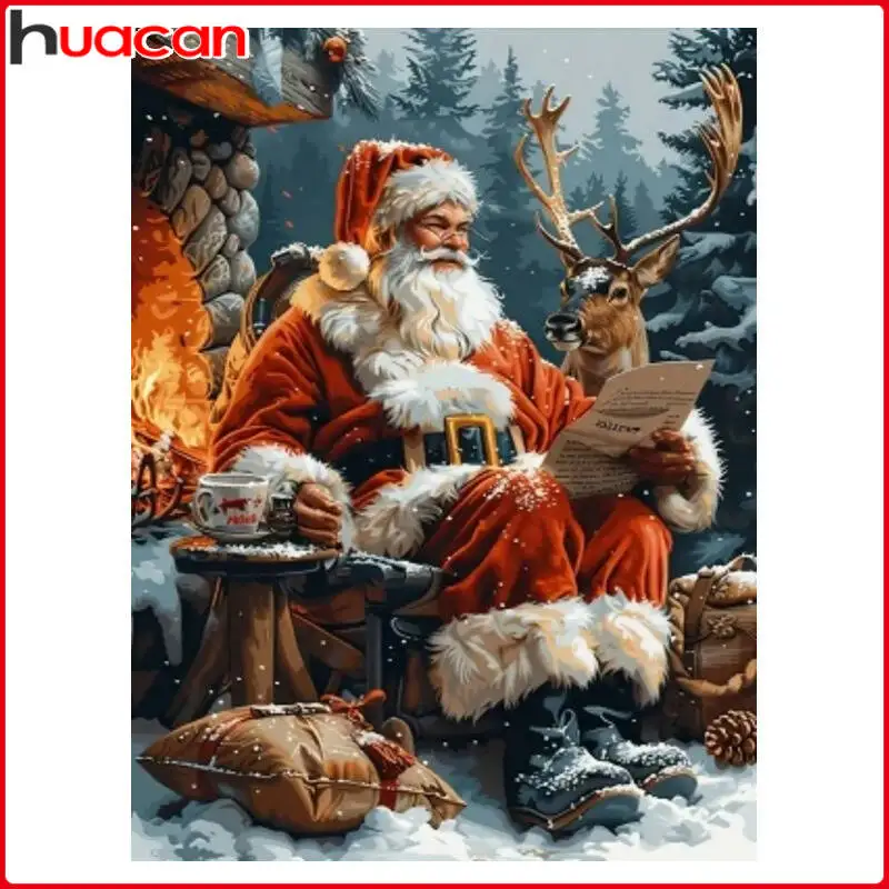 Huacan 5D Diamond Painting Christmas Santa Claus With Deer Diamond Mosaic Set Children's Hobby Picture Decoration