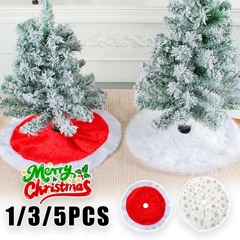 61/122cm Red Christmas Tree Skirt Cloth Leaf Pattern Festive Floor Mat Decoration