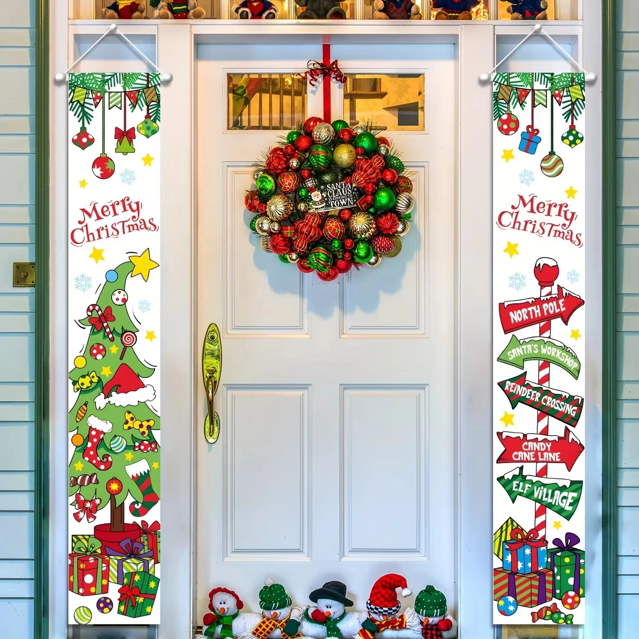 1 Greentown door cover - large holiday decoration, Greentown green door flag, Christmas decoration