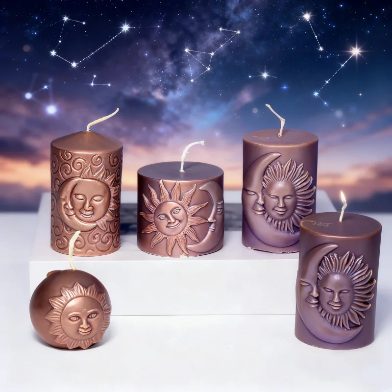 3d Sun Moon Star Face Silicone Mold DIY Sun with Moon Goddess Soap Plaster Resin Cylinder Mold Aromatherapy Candle Making Tool