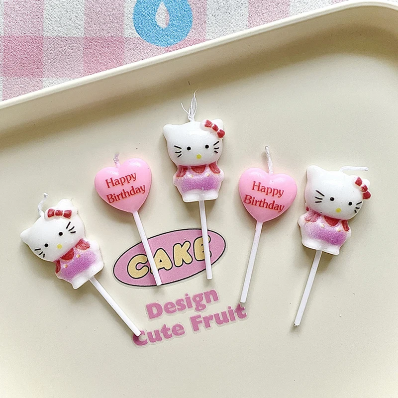 5pcs Cat Birthday Candle Kids Birthday Party Cake Decoration Cute Cat Heart Candles Happy Birthday Cake Toppers  Read more