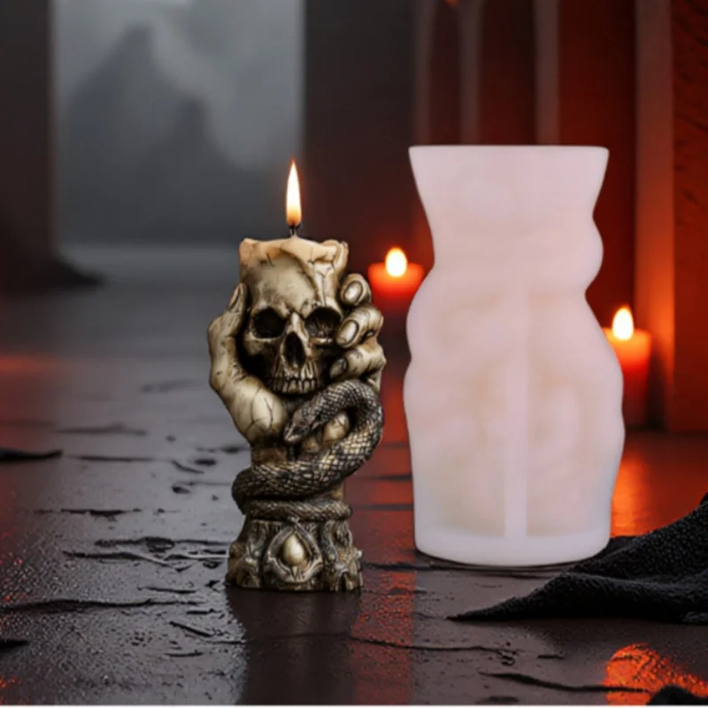 DIY Skeleton Snake Hand Candle Silicone Mold Handmade Dark Rose Hand Bone Aromatherapy Gypsum Candle Mold Halloween Party Decor
