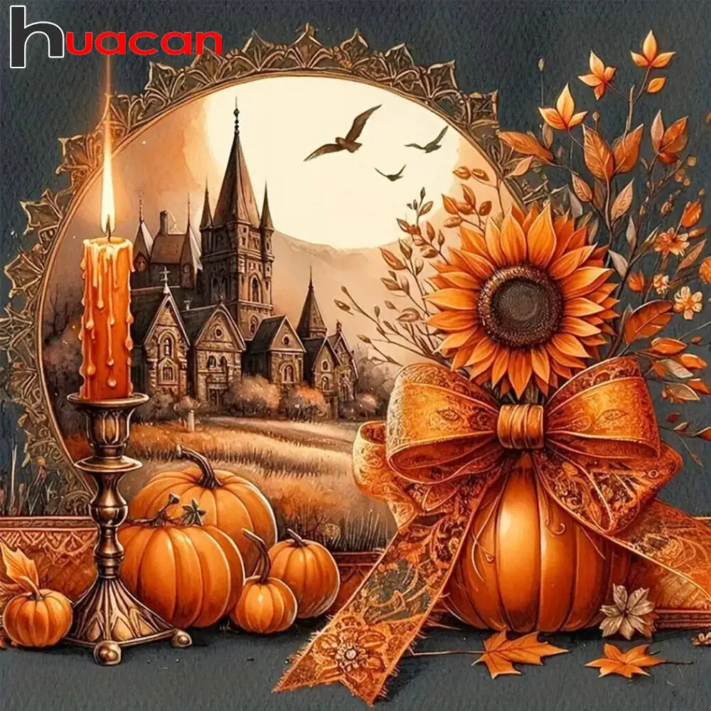 Huacan Full Diamond Painting Flower Candle Drill Embroidery 5D Diy Mosaic Rhinestones Art Handmade Gift