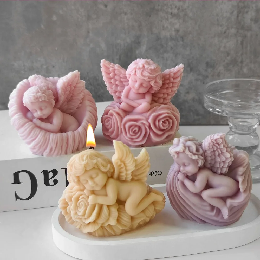 Multi Style Flower Wings Angel Scented Candle Mold Rose Human Baby Gypsum Silicone Mould Relief Wedding Decor Mother’s Day Gifts
