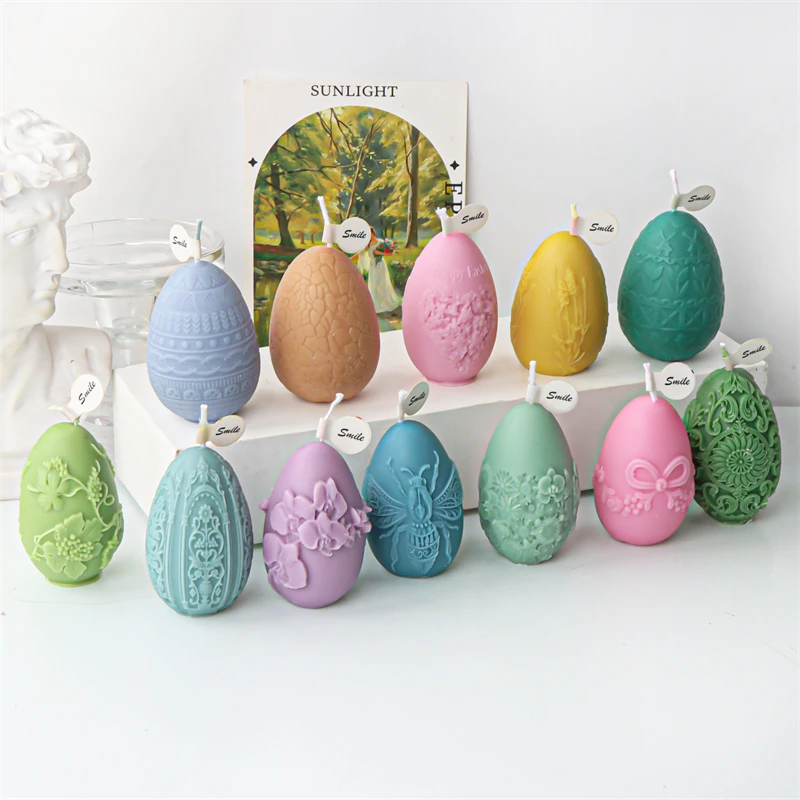 Easter Egg Pattern Silicone Candle Mold Aromatherapy Plaster DIY Craft Candles Making Tools Ornaments Embossed Flower Egg Mold