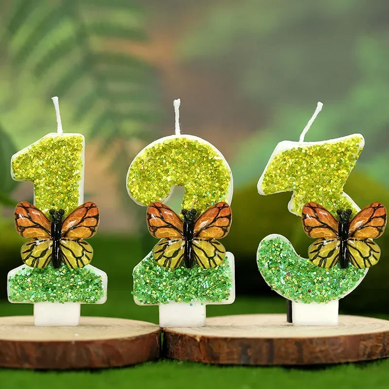 0-9 Number Cake Candle Creative Funny Birthday Candles Green Butterfly Cake Candles Soywax Birthday Party Cake Topper Decoration