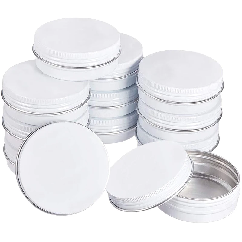 50Pcs 100g Aluminum Tin Jars White Empty Round Aluminum Box Metal Tin Can Screw Thread Lid Candle Tea Candy Box