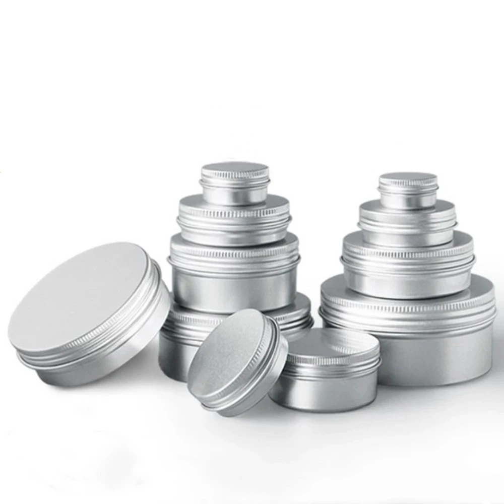 5ml-250ml Cosmetic Aluminum Cans Aluminum Boxes Silver Aluminum Tins Cans Screw Top Round Candle Spice Tins Cans Lid Containers